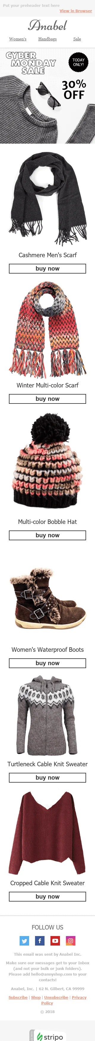 Weihnachten E-Mail-Vorlage "Warme Kleidung" für Mode-Branche