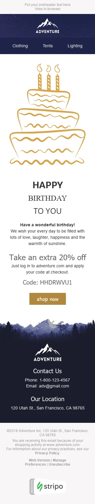 Geburtstag E-Mail-Vorlage "Guter Kuchen" für Tourismus-Branche
