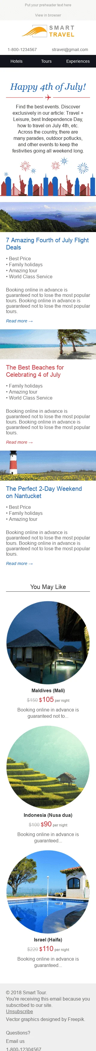 Independence Day E-Mail-Vorlage "Entdecken Sie Amerika" für Tourismus-Branche