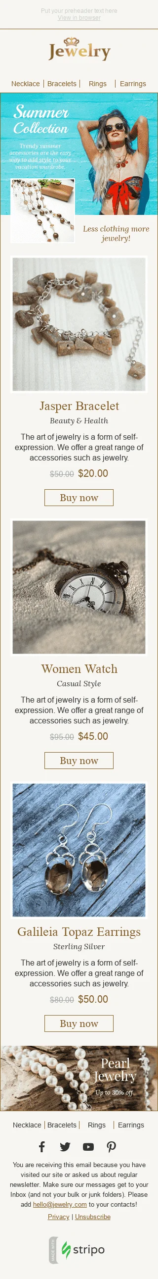Neue Kollektion E-Mail-Vorlage "Modischer Sommer" für Schmuck-Branche