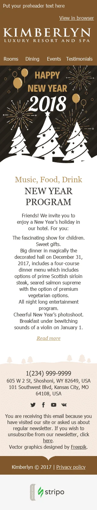 Neujahr E-Mail-Vorlage "die Einladung" für Hotels-Branche