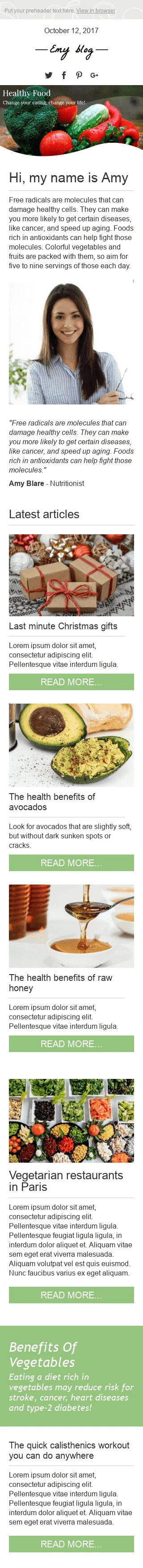Werbung E-Mail-Vorlage "Gesunde Lebensmittel" für Publikationen und Blogs-Branche