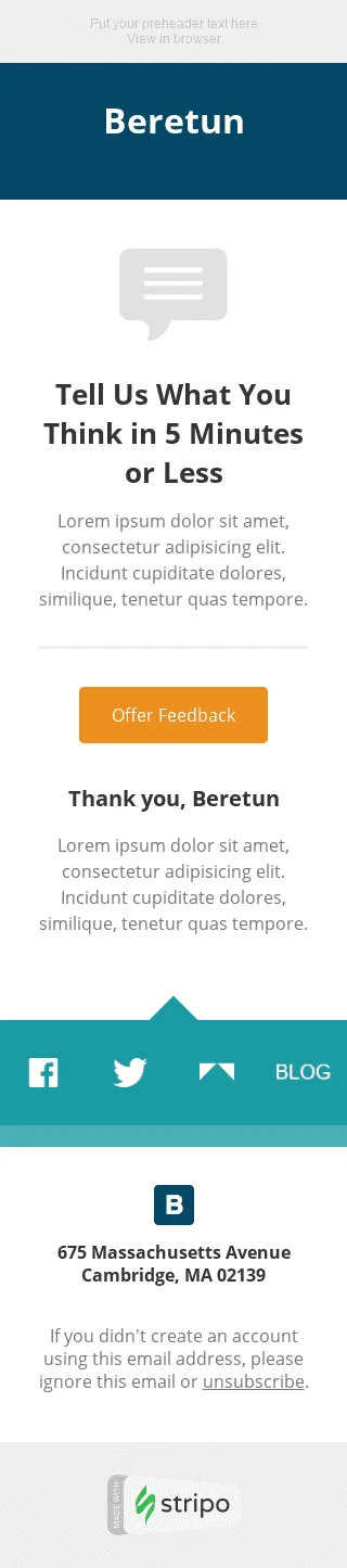 Umfragen & Feedback E-Mail-Vorlage "5 Minuten" für Mode-Branche