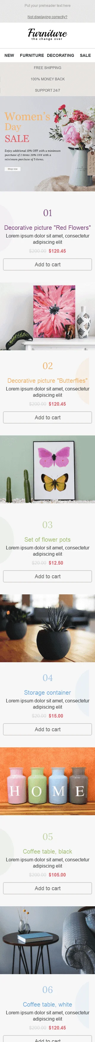 Weltfrauentag E-Mail-Vorlage "Heller Frühling" für Möbel, Innenausstattung & DIY-Branche