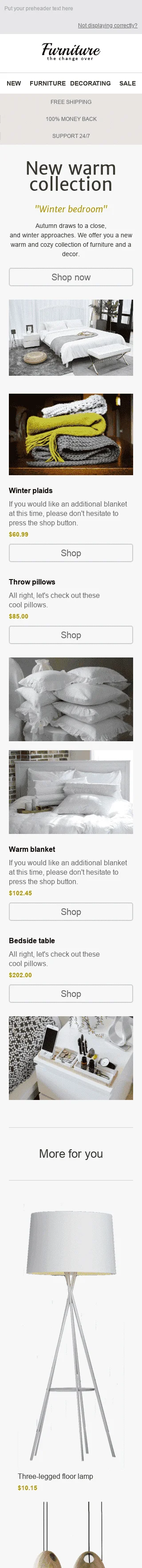 Plantilla de correo electrónico "Dormitorio cálido" de Nueva colección para la industria de Muebles, interior y bricolaje
