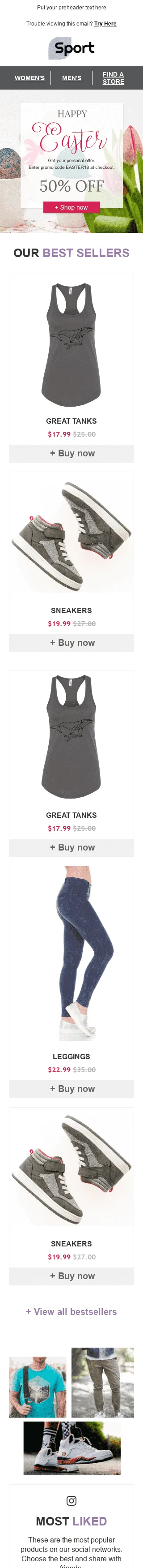 Plantilla de correo electrónico "Día brillante" de Semana Santa para la industria de Deportes