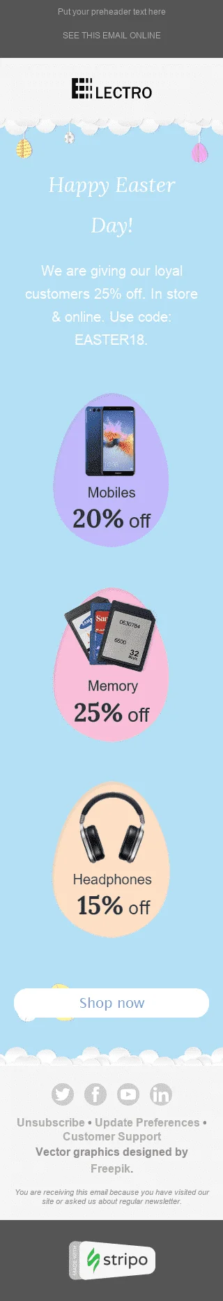 Plantilla de correo electrónico "Nubes suaves" de Semana Santa para la industria de Gadget