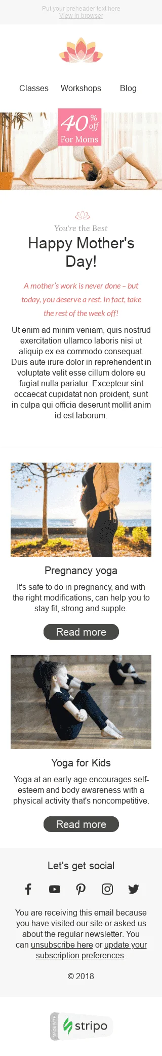 Plantilla de correo electrónico "Belleza y salud" de Día de la Madre para la industria de Deportes