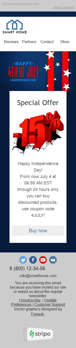 Plantilla de correo electrónico "Evento memorable" de Día de la Independencia para la industria de Muebles, interior y bricolaje