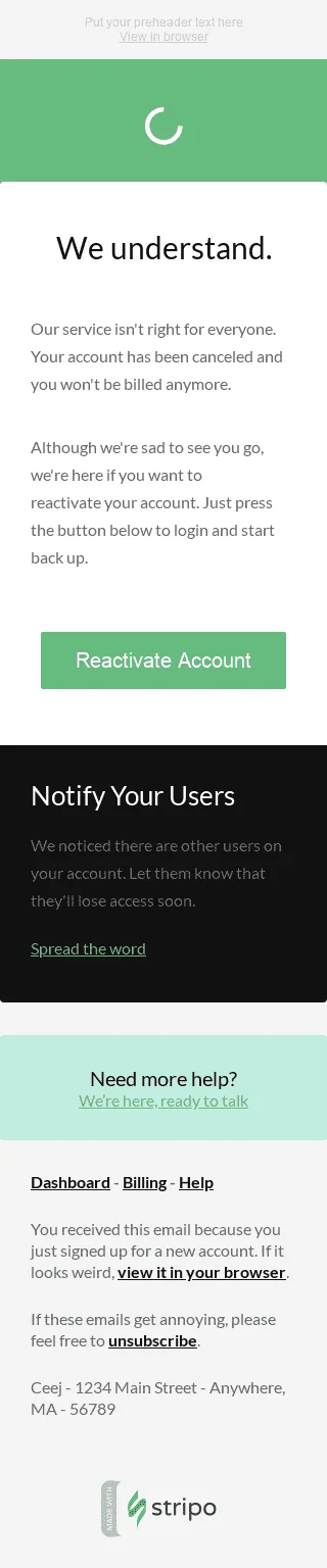 Plantilla de correo electrónico "Cuenta suspendida" de Retención y reactivación para la industria de Software y tecnología