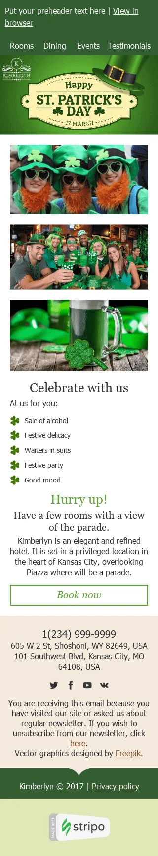 Modèle de courrier électronique Saint Patrick "Célébrez la fête avec nous" pour le secteur Hôtels