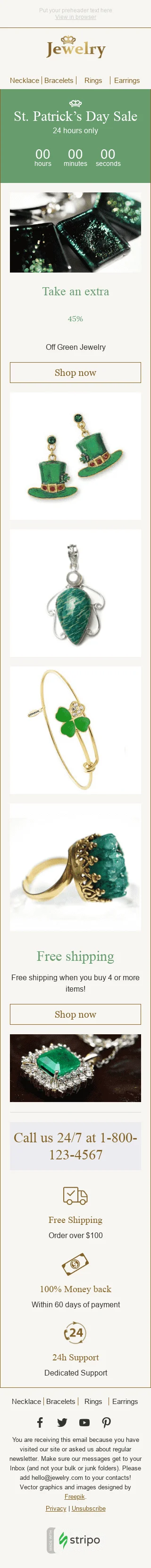 Modèle de courrier électronique Saint Patrick "Heures de bonheur" pour le secteur Bijoux