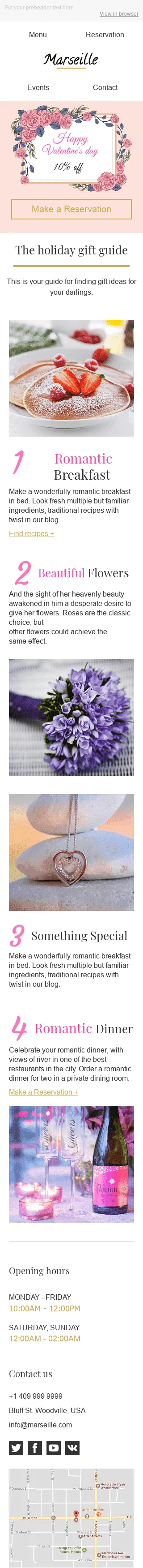Modèle de courrier électronique Saint Valentin "Quelque chose de spécial" pour le secteur Restaurants
