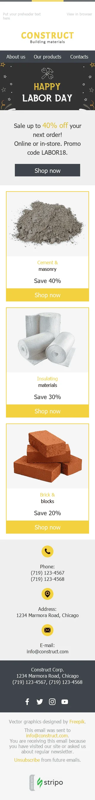 Modèle de courrier électronique Fête du Travail "Joli cadeau" pour le secteur Construction