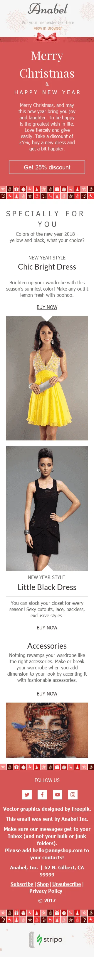 Modèle de courrier électronique Noël "Robes de cocktail" pour le secteur Mode