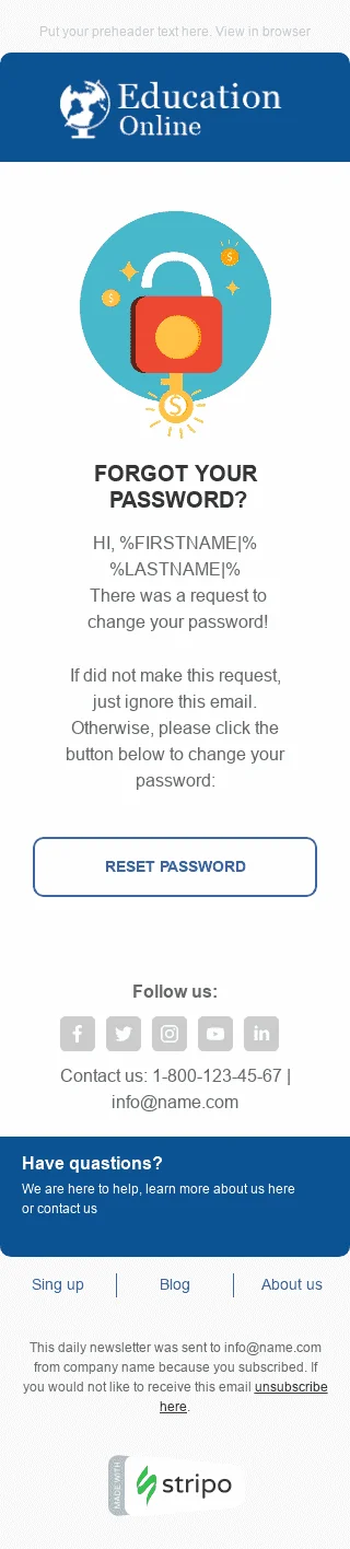 Modèle de courrier électronique Réinitialisation de Mot de Passe «Ne t'inquiète pas» pour le secteur Rentrée des Classes