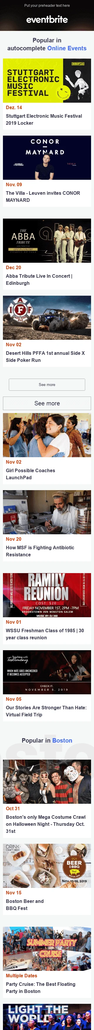 Modèle de courrier électronique Promo «Eventbrite» pour le secteur Publications & Blogging