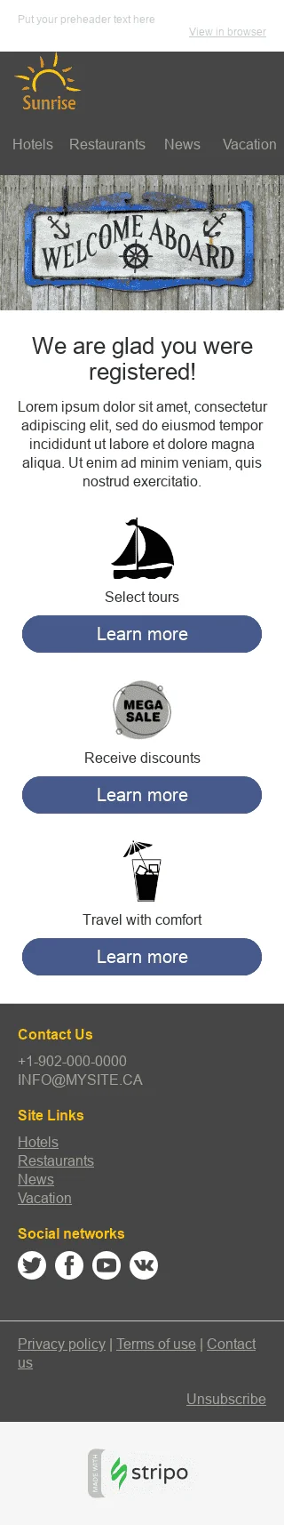 Modèle de courrier électronique Bienvenue "Voyagez avec nous" pour le secteur Tourisme