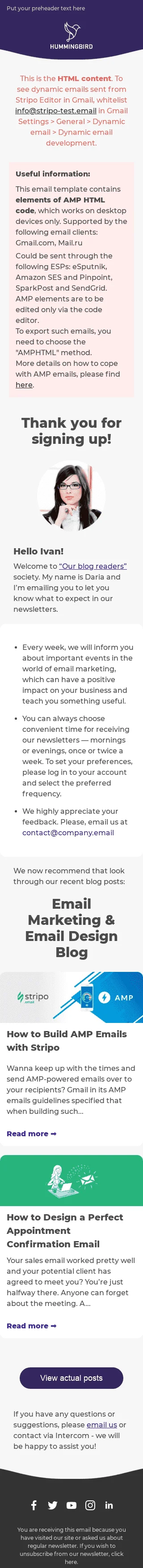 Modèle de courrier électronique Bienvenue «Actualités marketing» pour le secteur Publications & Blogging