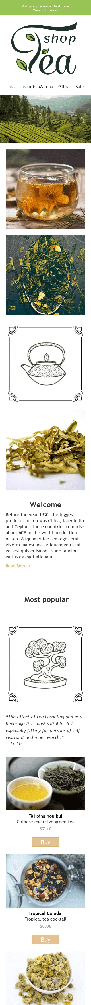 Modello Email Promo "Negozio di tè" per il settore industriale di Bevande