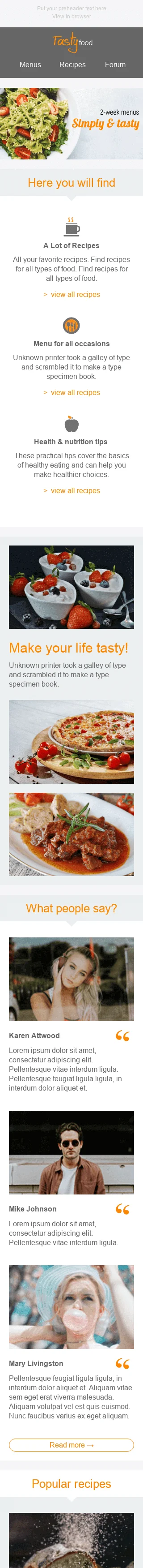 Modello Email Promo "Semplice e gustoso" per il settore industriale di Cibo