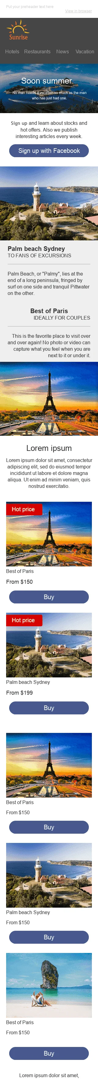 Modello Email Promo "Vacanze estive" per il settore industriale di Turismo