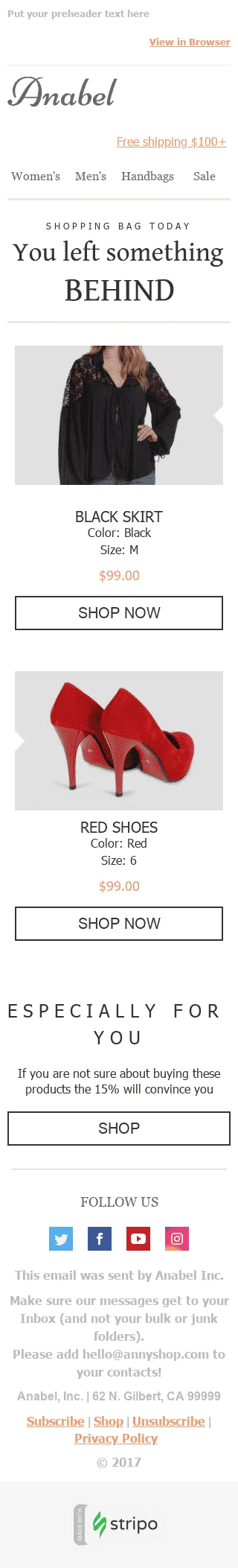 Modelo de E-mail de «Coisas Esquecidas» de Carrinho abandonado para a indústria de Moda
