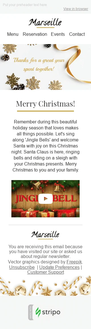 Modelo de E-mail de «Bate o Sino» de Natal para a indústria de Restaurantes