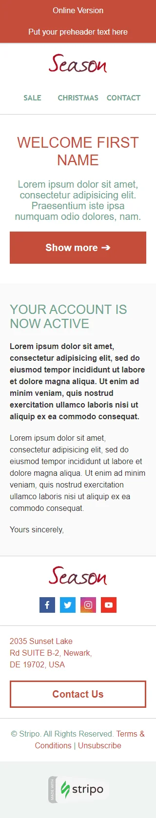 Modelo de E-mail de «Saudações sazonais» de Boas-vindas para a indústria de Presentes e Flores