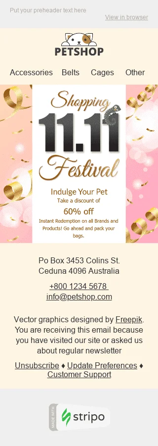 Шаблон письма к празднику Всемирный День Шопинга "Счастливые животные" для индустрии "Животные"