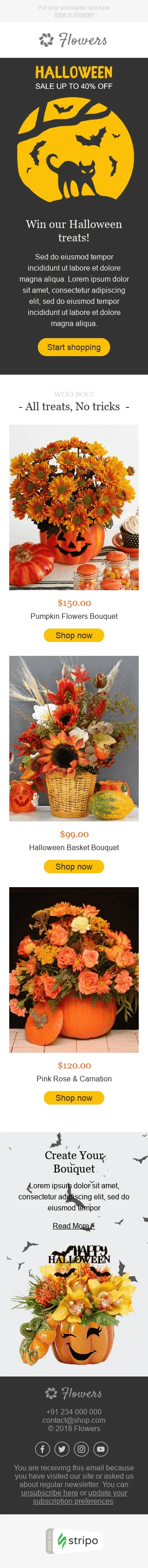 Шаблон письма к празднику Хэллоуин "Осеннее очарование" для индустрии "Подарки и Цветы"