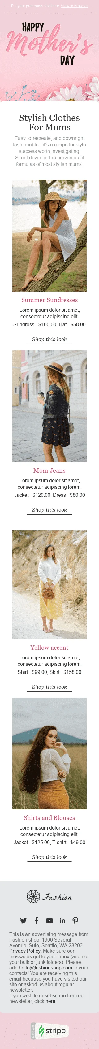 Шаблон письма к празднику День Матери "Всегда стильная" для индустрии "Мода"