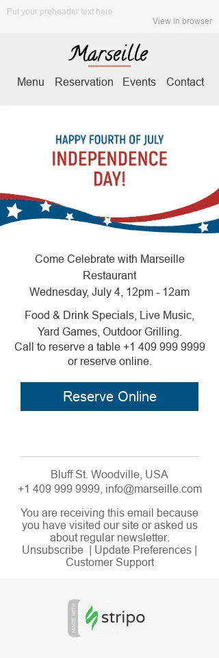 Шаблон письма к празднику Дня Независимости "Вкусная еда" для индустрии "Рестораны"