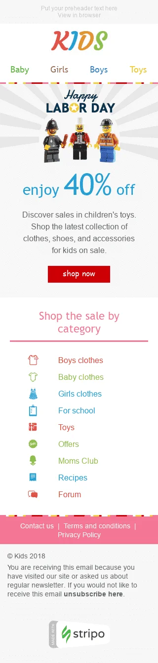 Шаблон письма к празднику День Труда "Скидки на все" для индустрии "Дети"