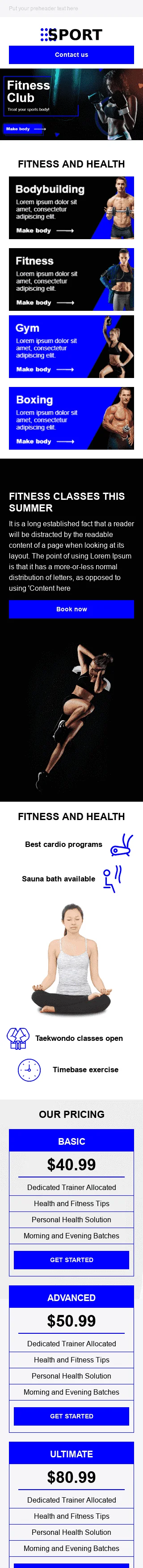 Промо шаблон письма «Спортивная жизнь» для индустрии «Спорт»