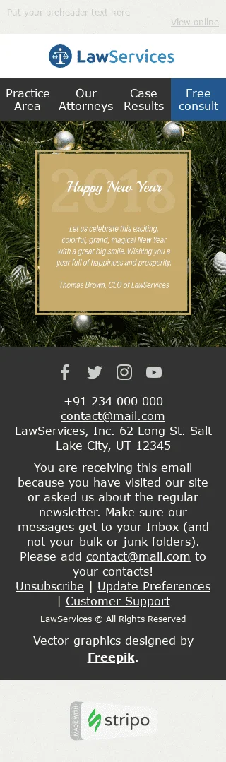 New Year Email Template "Fascinating Event" for Legal industry