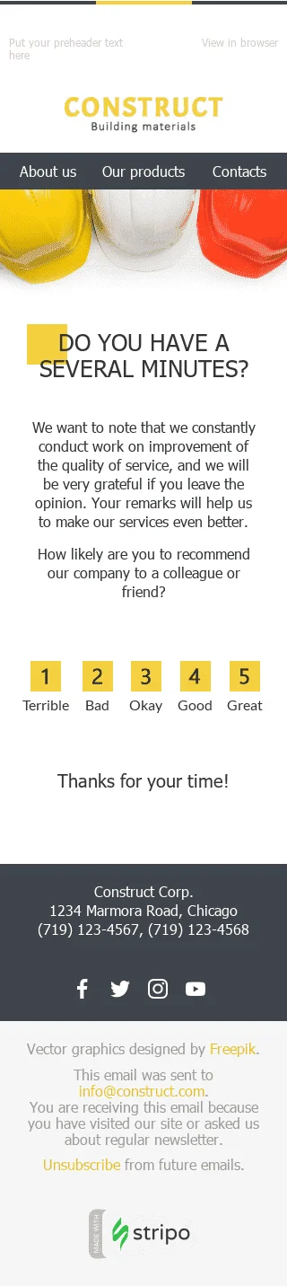 Survey & Feedback Email Template "Quick Question" for Construction industry