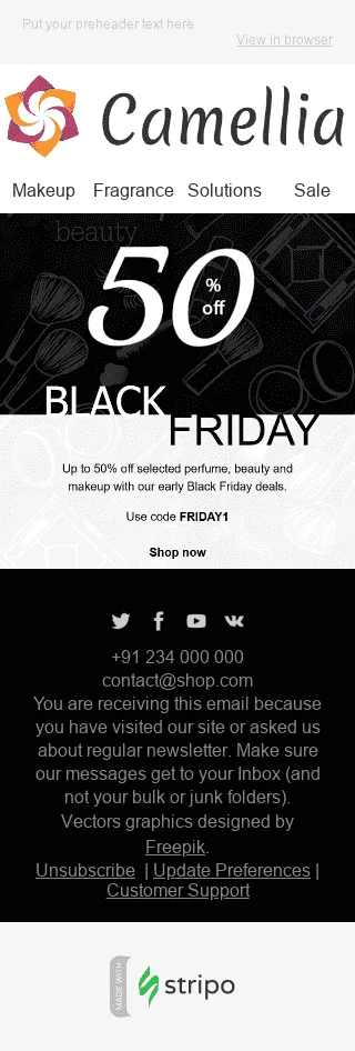 Шаблон листа до свята Чорна П'ятниця "Прекрасна пропозиція" для індустрії "Косметика"