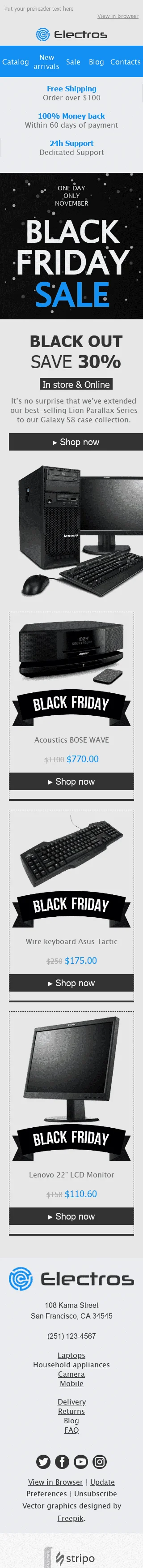 Шаблон листа до свята Чорна П'ятниця "Цінове безумство" для індустрії "Гаджети"