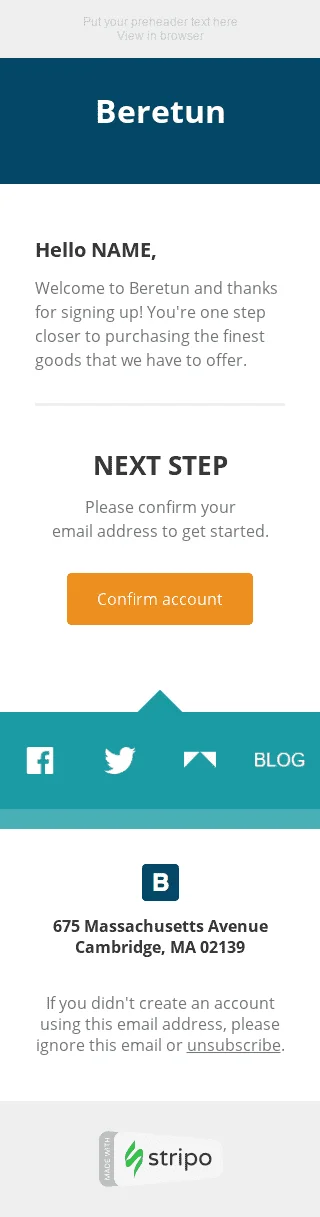 Шаблон листа з привітанням клієнта після реєстрації "Вірний крок" для індустрії "Мода"